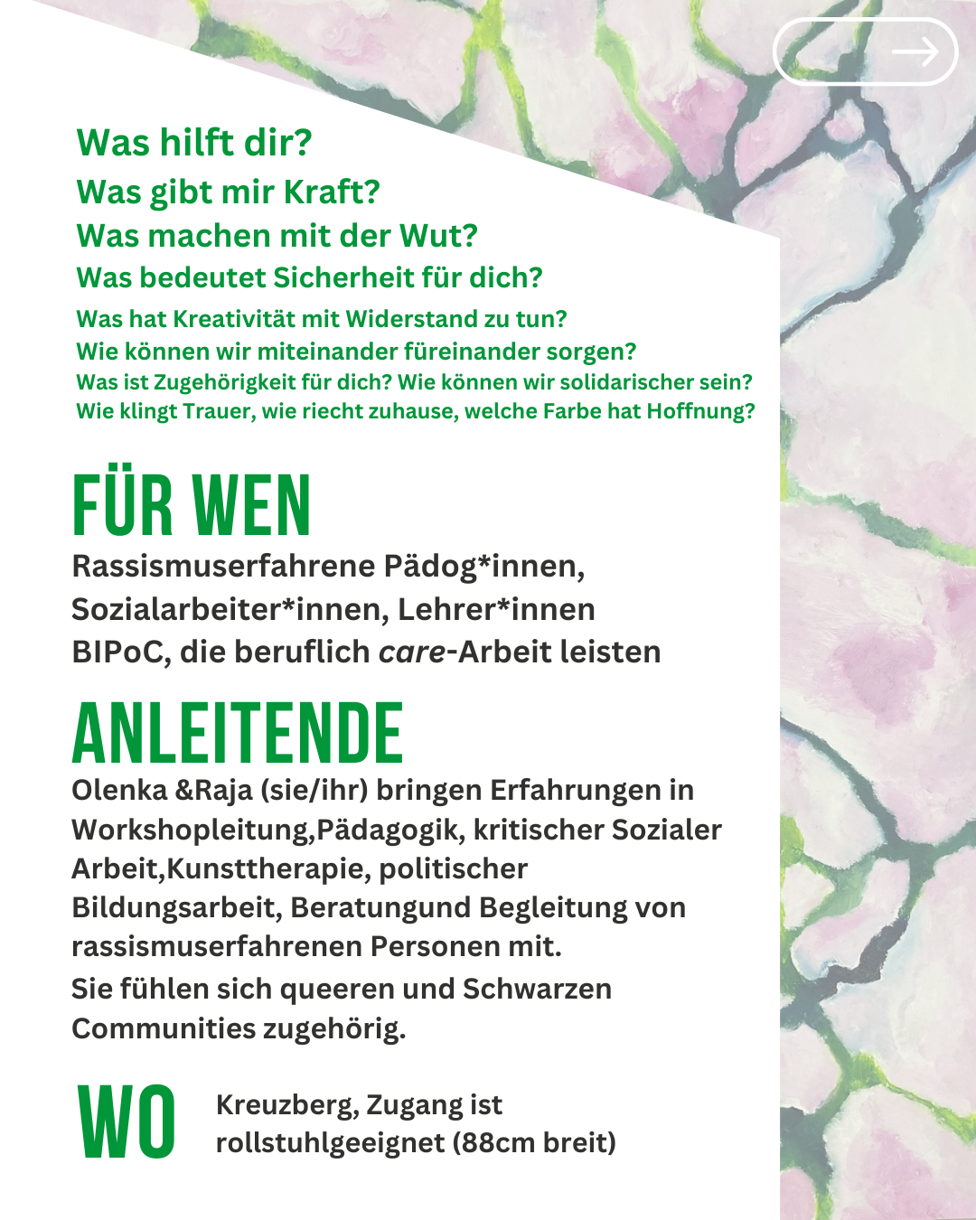 Reihe: EMPOWERMENT Kunst und Entschleunigung mit/für BIPoC, die mit Menschen arbeiten I Ab 10. September 2025 23. Juli Verfasst von Olenka Bordo Benavides Olenka Bordo Benavides